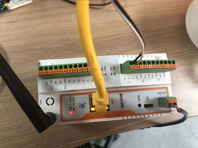1>硬件鏈接:M100的網(wǎng)口和電腦直連,或者通過路由器將M100和電腦組成一個局域網(wǎng);裝上4G天線;M100的485串口通過USB轉(zhuǎn)485接到PC上;上電