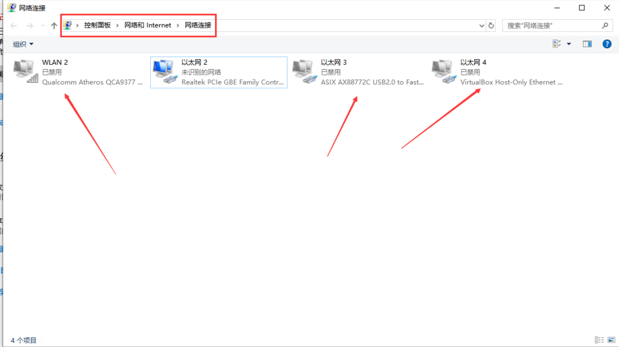3. 按路徑:控制面板--->網絡和Internet--->網絡和共享中心找到“windows防火墻”和“更改適配器設置”選項,關閉防火墻并禁用與本次測試無關的網卡。并關閉電腦殺毒軟件。