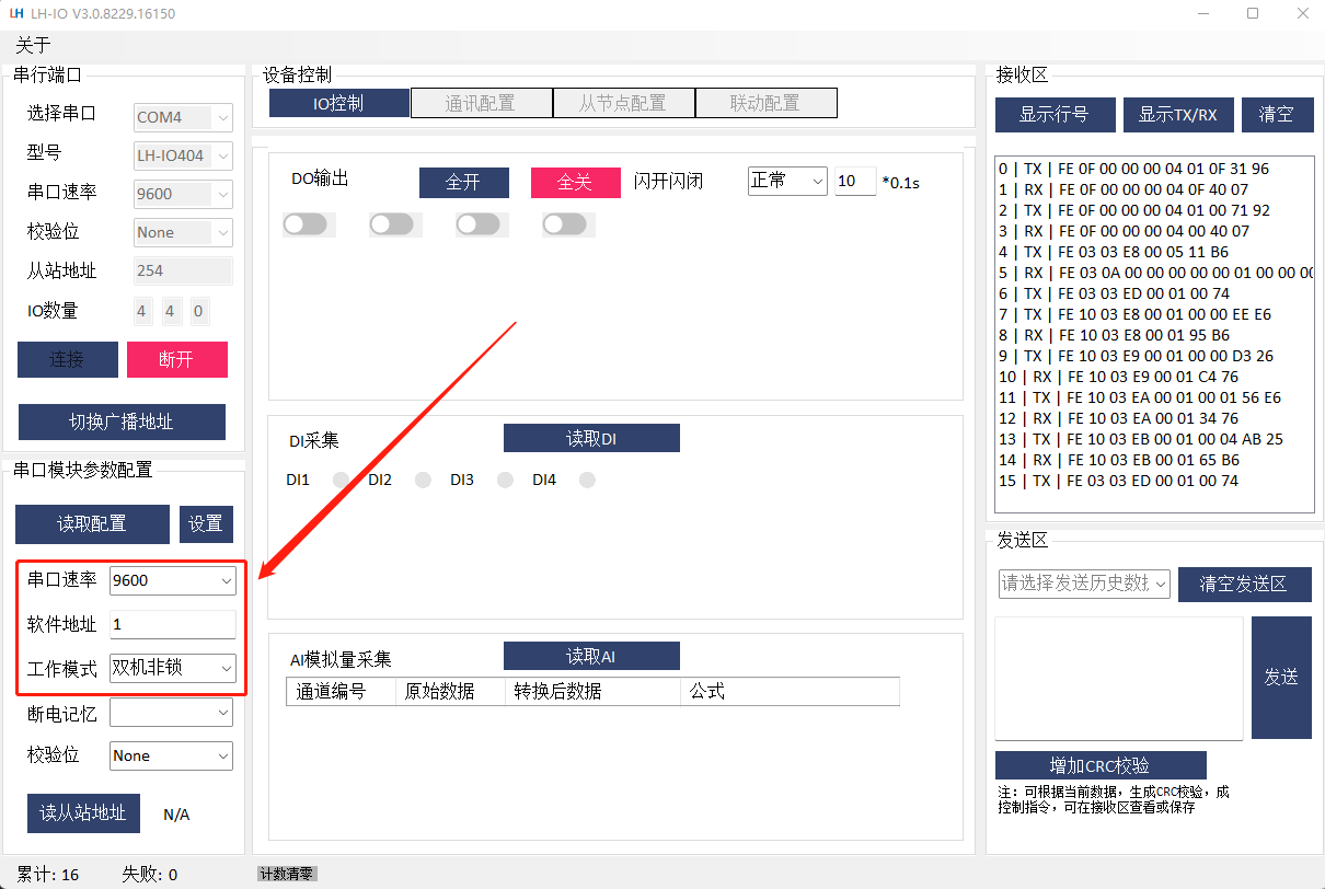 5.配置完成后,一臺(tái)404觸發(fā)DI ,另外一臺(tái)404對(duì)應(yīng)的DO 端口就會(huì)吸合