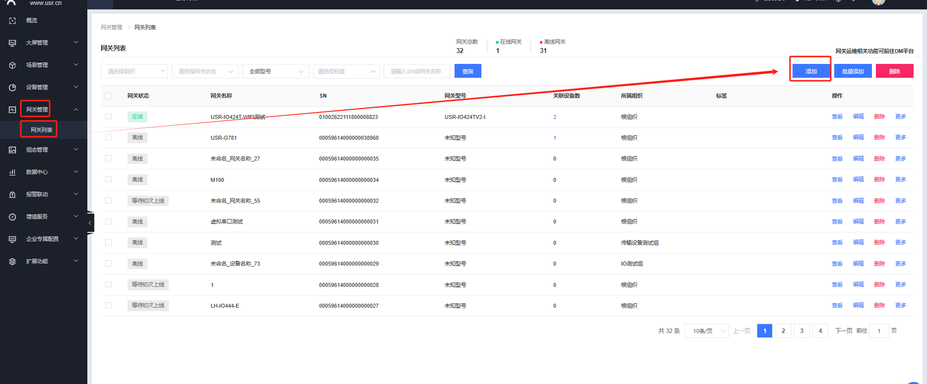 網(wǎng)關(guān)管理--網(wǎng)管列表--添加