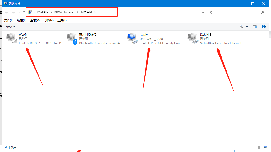 1、按路徑:控制面板——網絡和Internet——網絡和共享中心找到“windows防火墻”和“更改適配器設置”選項,關閉防火墻并禁用與本次測試無關的網卡。并關閉電腦殺毒軟件。
