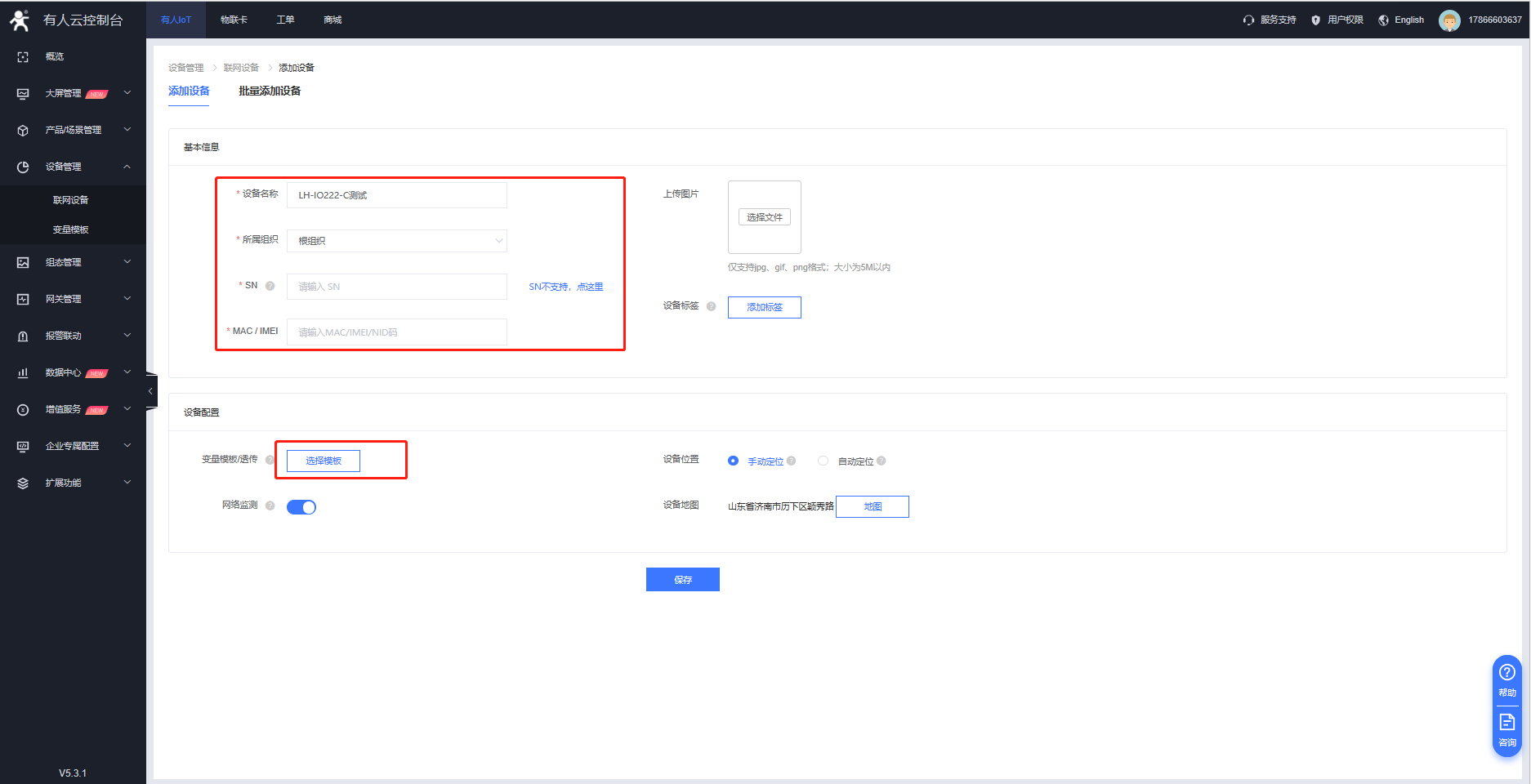 2. 設(shè)備管理—聯(lián)網(wǎng)設(shè)備—添加設(shè)備