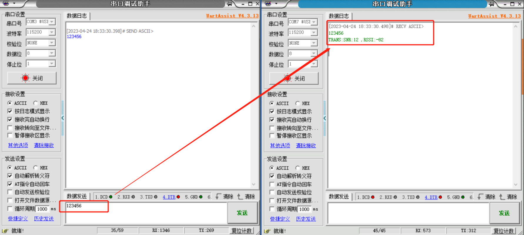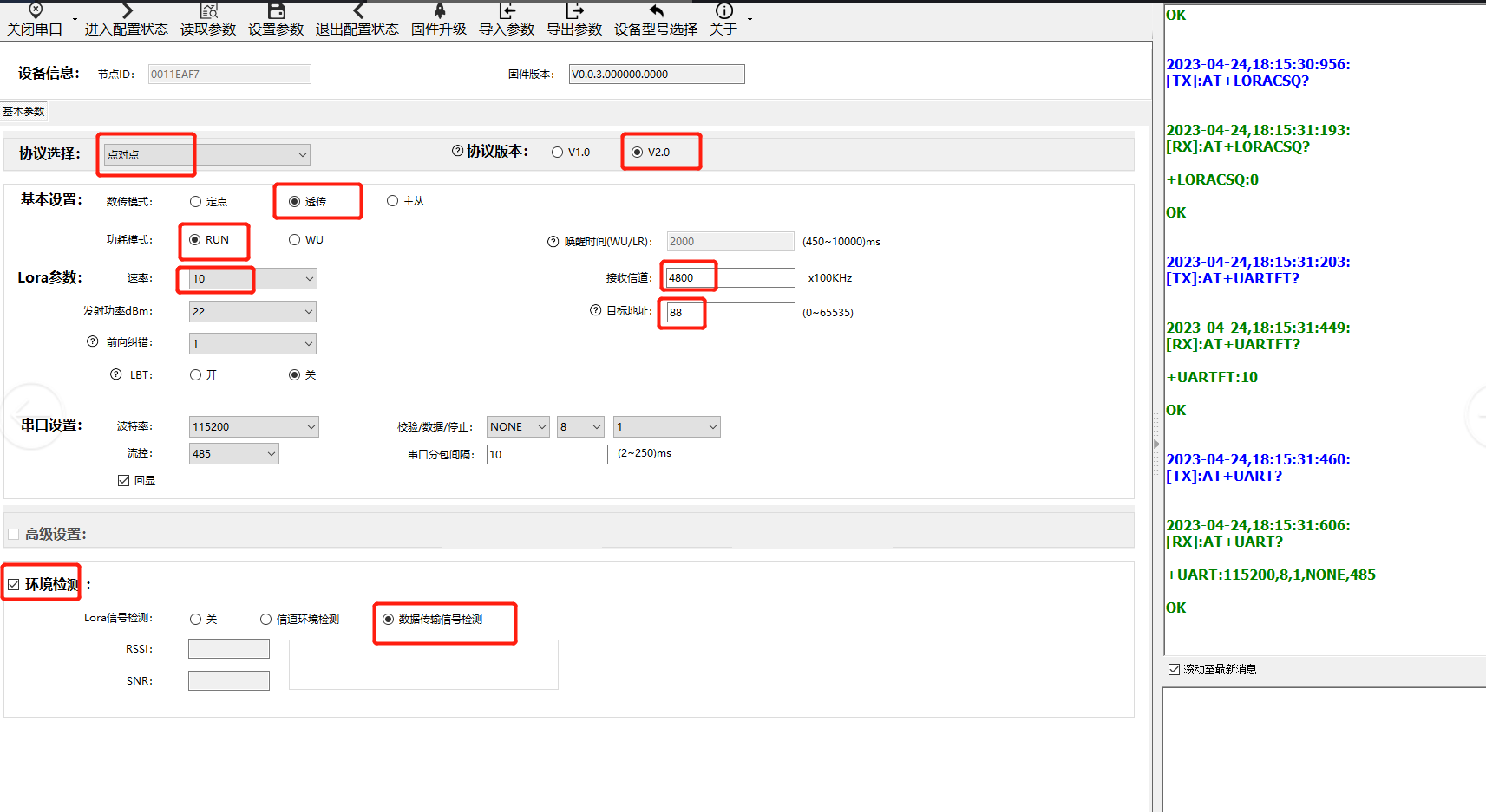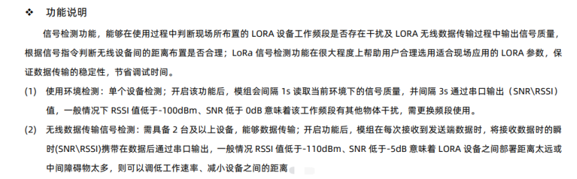 4)設(shè)置成功后,DR206會自動重啟。成功開啟該功能后,模組會間隔 1s 讀取當(dāng)前環(huán)境下的信號質(zhì)量,并間隔 3s 通過串口輸出(SNR\RSSI) 值。一般情況下 RSSI 值低于-100dBm、SNR 低于 0dB 意味著該工作頻段有其他物體干擾,那么就需更換頻段使用。