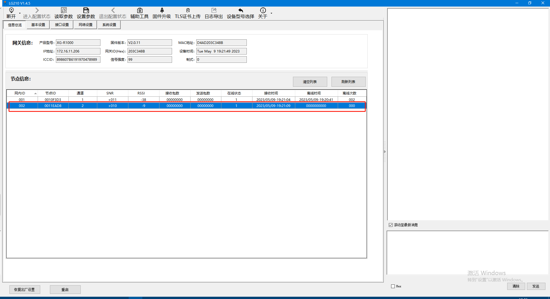 8、LG210重新獲取參數(shù),在節(jié)點信息中可以看到添加的USR-DR206-L已組網(wǎng)成功。