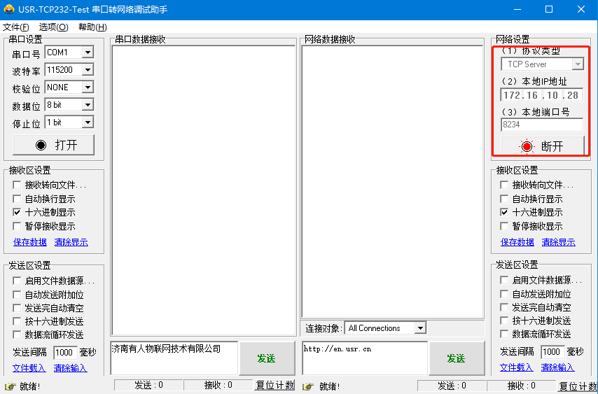 4、USR-TCP232-TEST串口調(diào)試助手軟件官網(wǎng)下載鏈接:http://www.0575400.com/Download/27.html