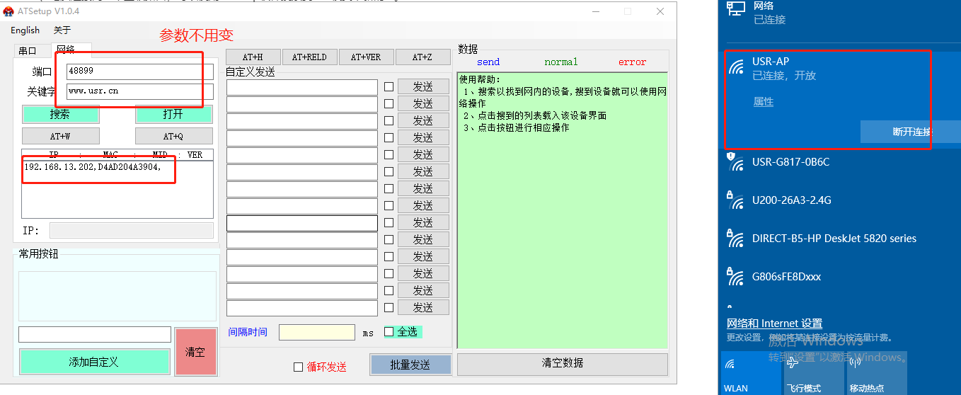 1、電腦連接同一個上級路由,可以使用ATsetup軟件搜索到STA模式下新的IP。用新的IP進入內置網頁查看設置參數。