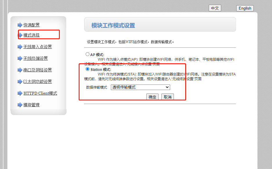 兩個W630 要實現一對一對傳,一個做AP 模式設置TCP server,另一個STA 模式設置TCP client。