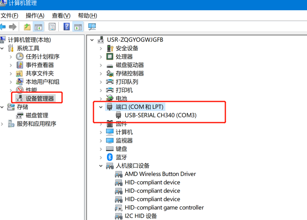 7.打開電腦設備管理器,查看com口,這里測試的是com3口。