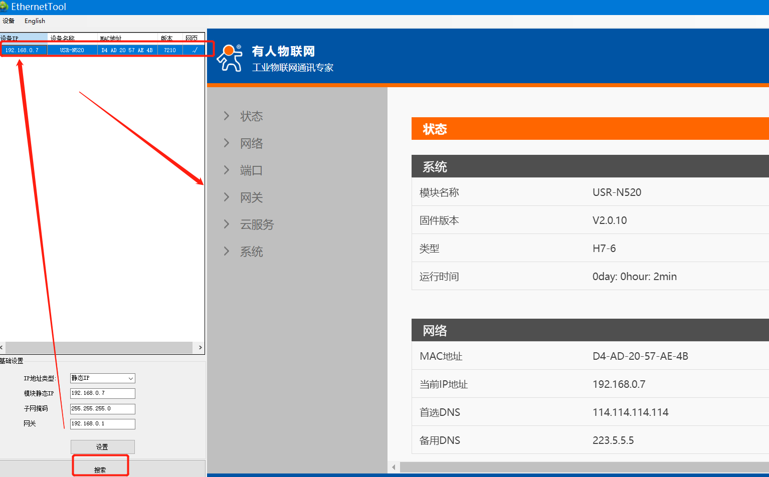 N520設備直連電腦,使用H7軟件搜索不到怎么辦?