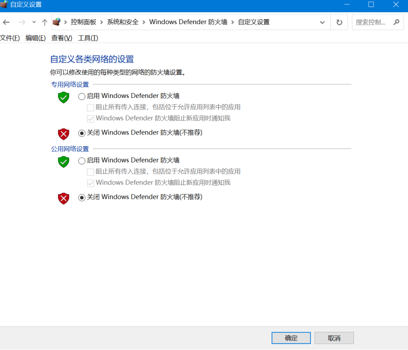 2)電腦關閉防火墻和殺毒軟件