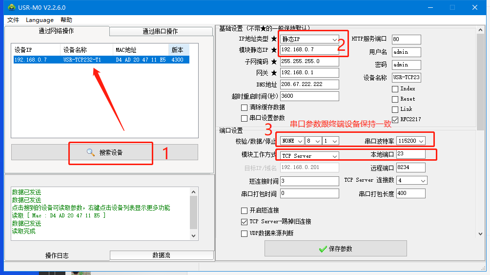 設置 T1 為 TCP Server 模式,方便用戶更換電腦,依然能夠連接設備。