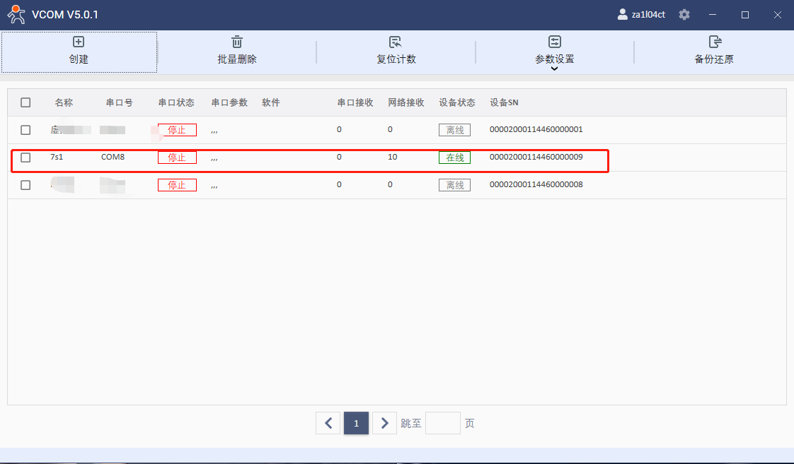創建一個虛擬串口綁定網關7s1,定義一個串口號。