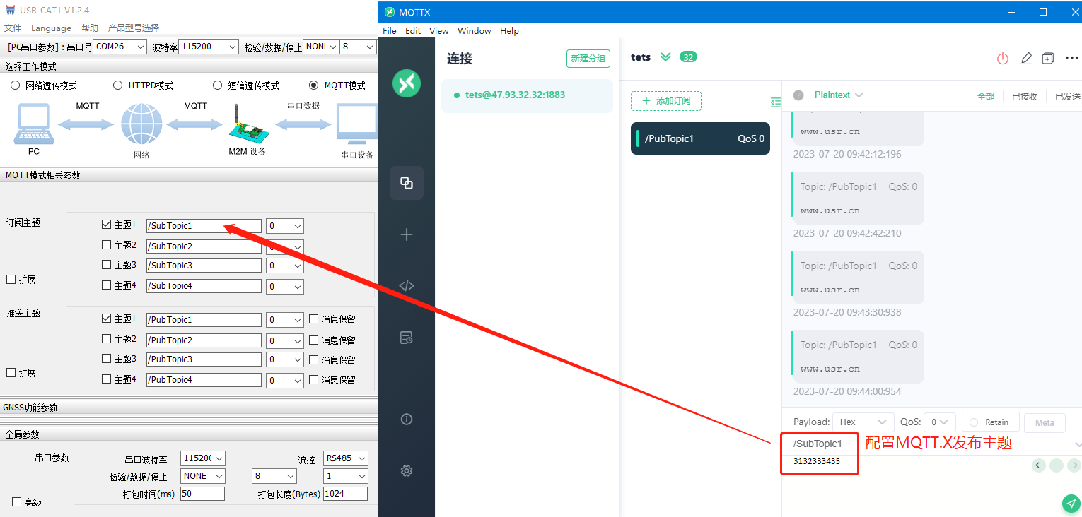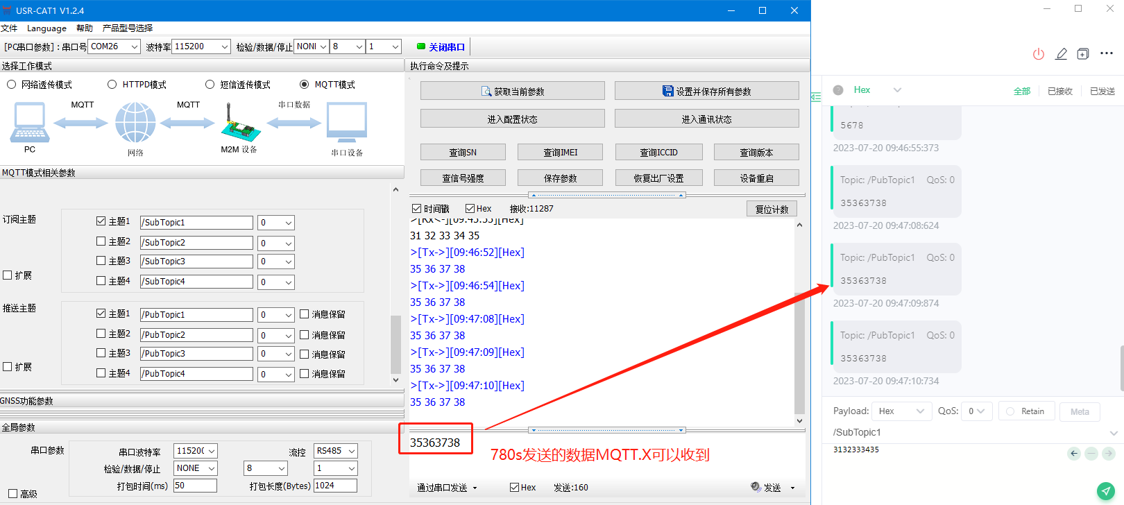5.USR-G780s MQTT的訂閱主題模式支持純透傳訂閱模式(訂閱主題數(shù)據(jù)向串口透傳)和攜帶主題訂閱模式(訂閱主題數(shù)據(jù)攜帶主題向串口透傳)。