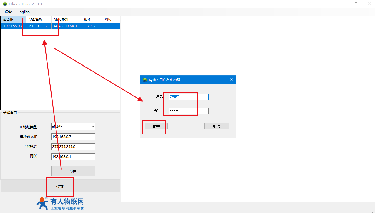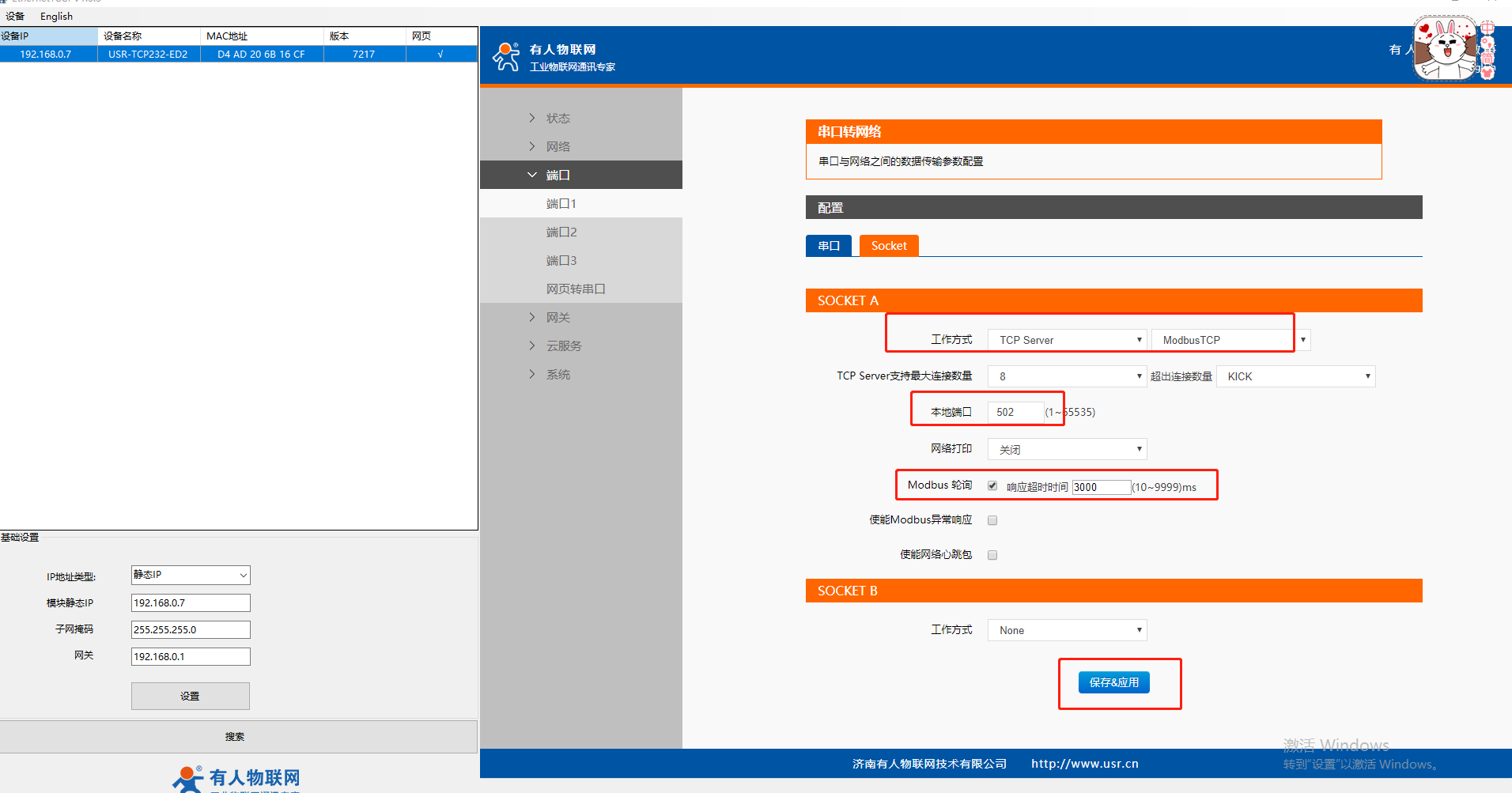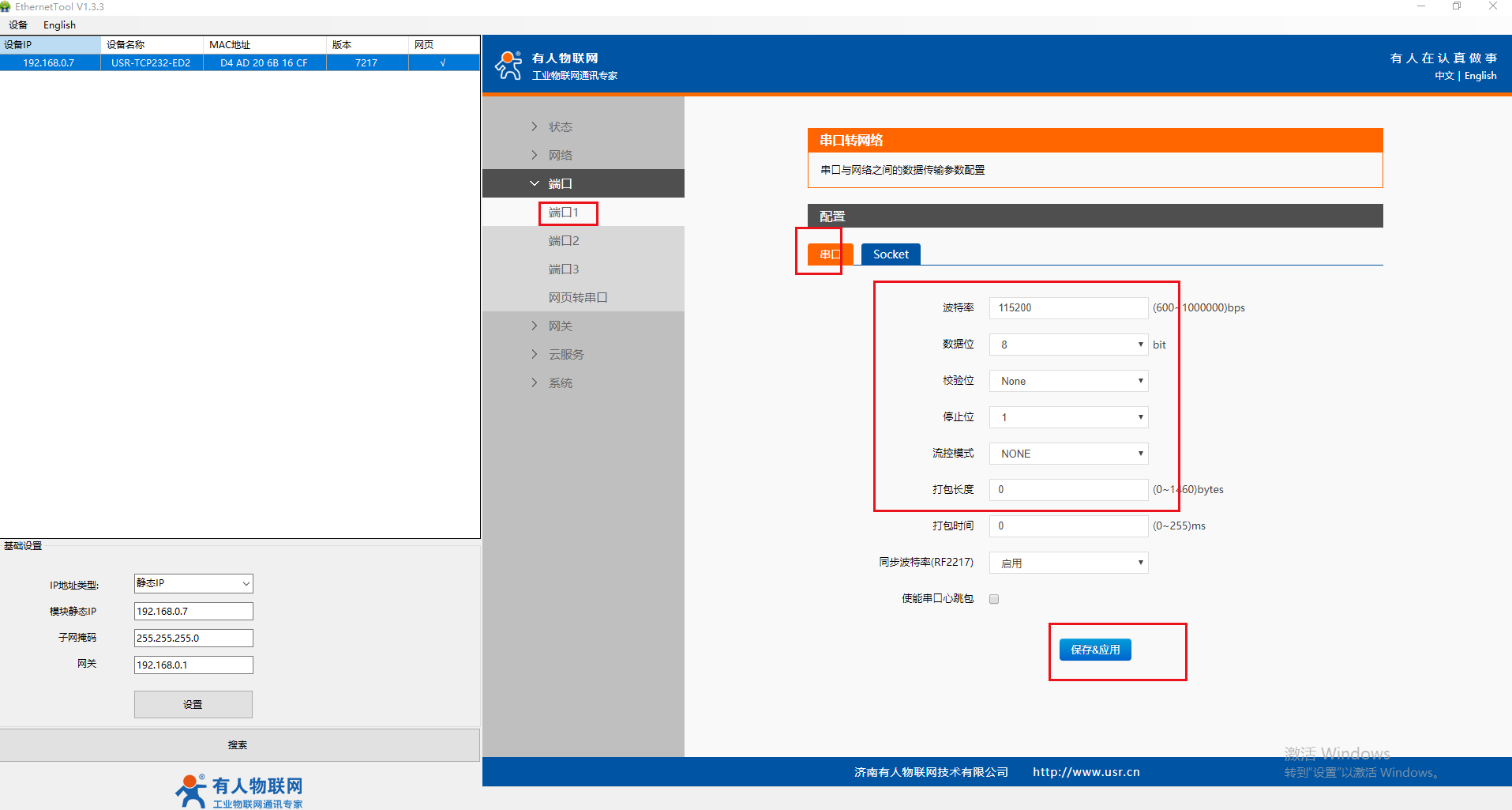 USR-TCP232-ED2的H7系列設置軟件:http://www.0575400.com/Download/383.html