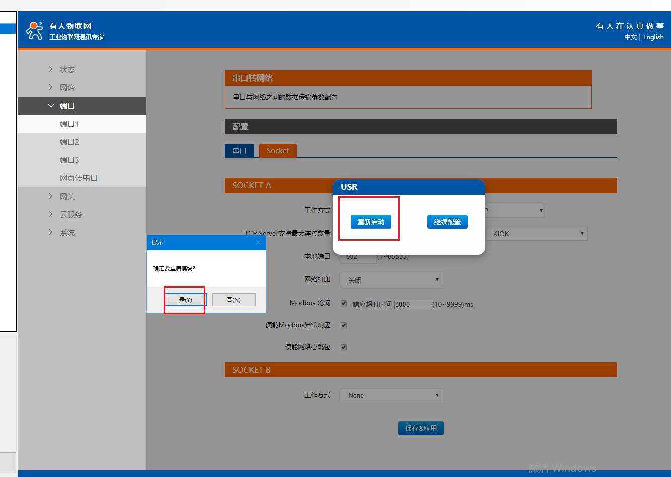 Socket:設置ED2的工作模式是TCPserver,開啟modbus TCP,