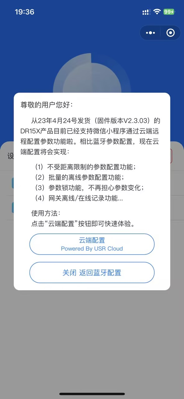 DTU 外殼正面貼有設備專屬二維碼,手機微信掃描該二維碼即可跳轉有人云手機端微信小程序登錄添加網關設備。有人云手機端微 信小程序介紹可以參考說明:http://cloud.usr.cn/document/334.htm