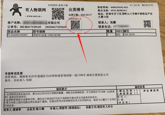 4、若批量購買網關設備,可以掃描紙質出貨單上方的“掃碼即可上云”二維碼批量添加網關設備