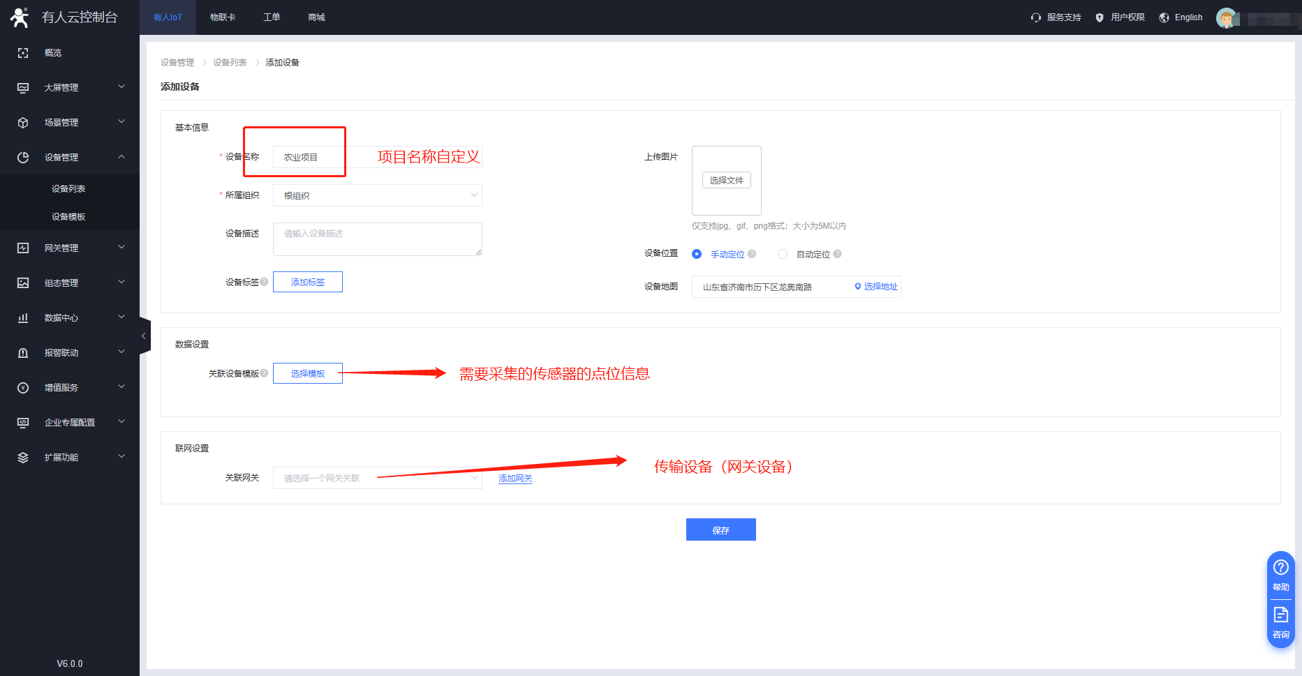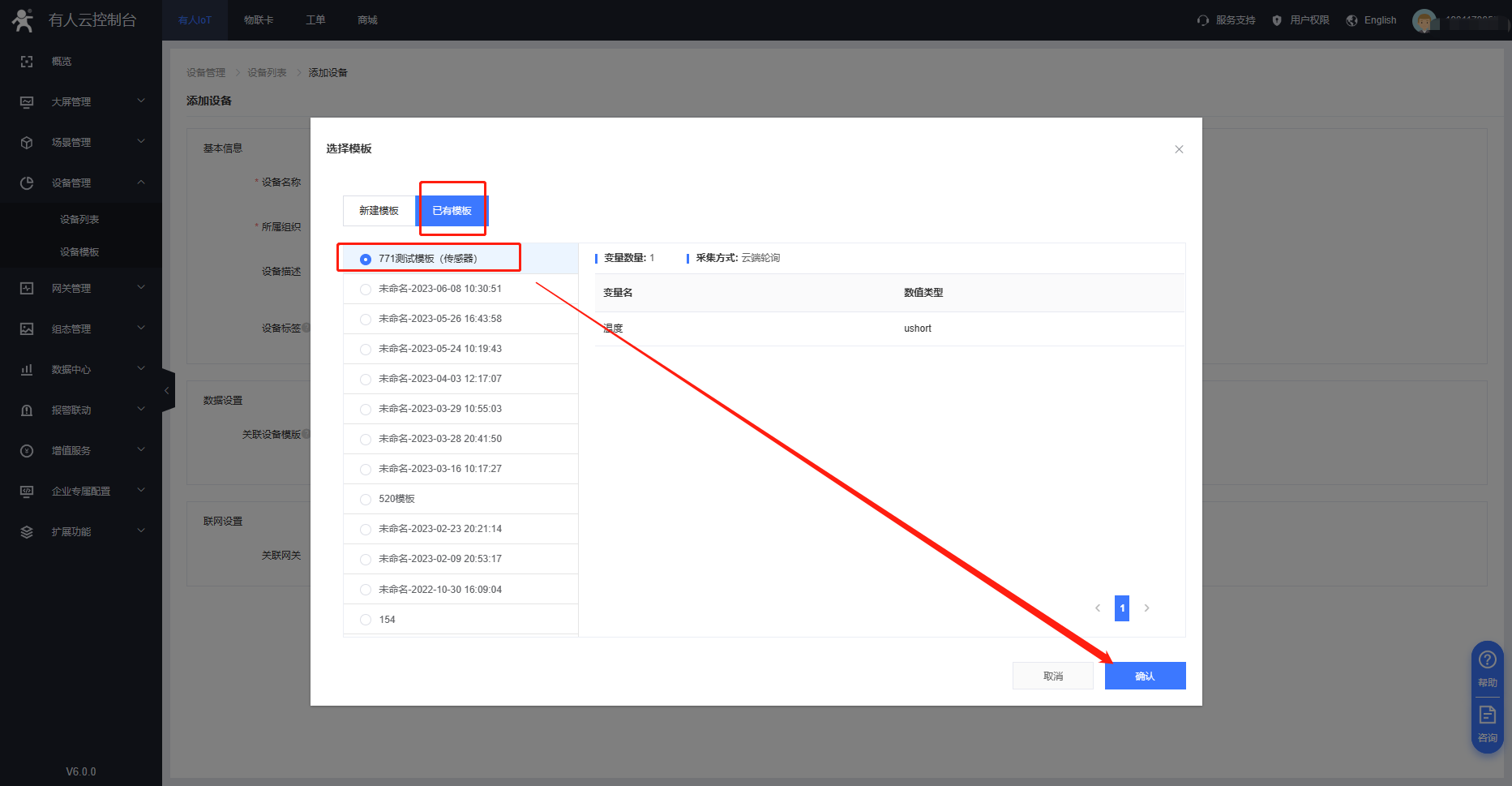 2、云平臺添加設備顯示