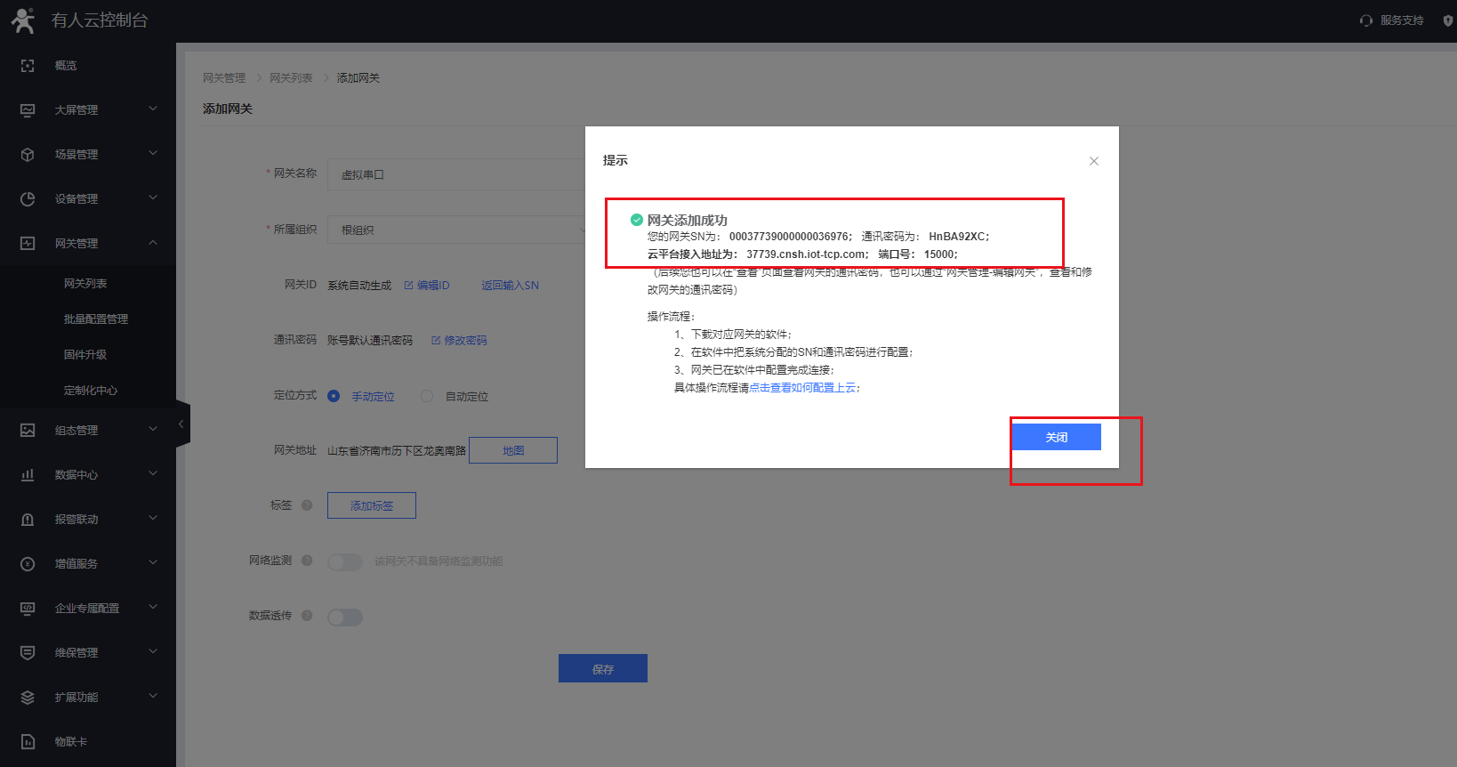 2.添加網關(這個我們用虛擬串口軟件模擬傳輸設備測試)