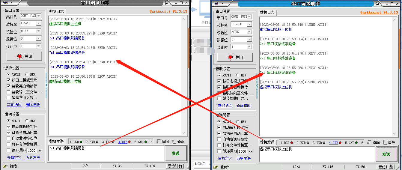 再打開一個串口調試助手,調用7s0-2的串口模擬上位機。