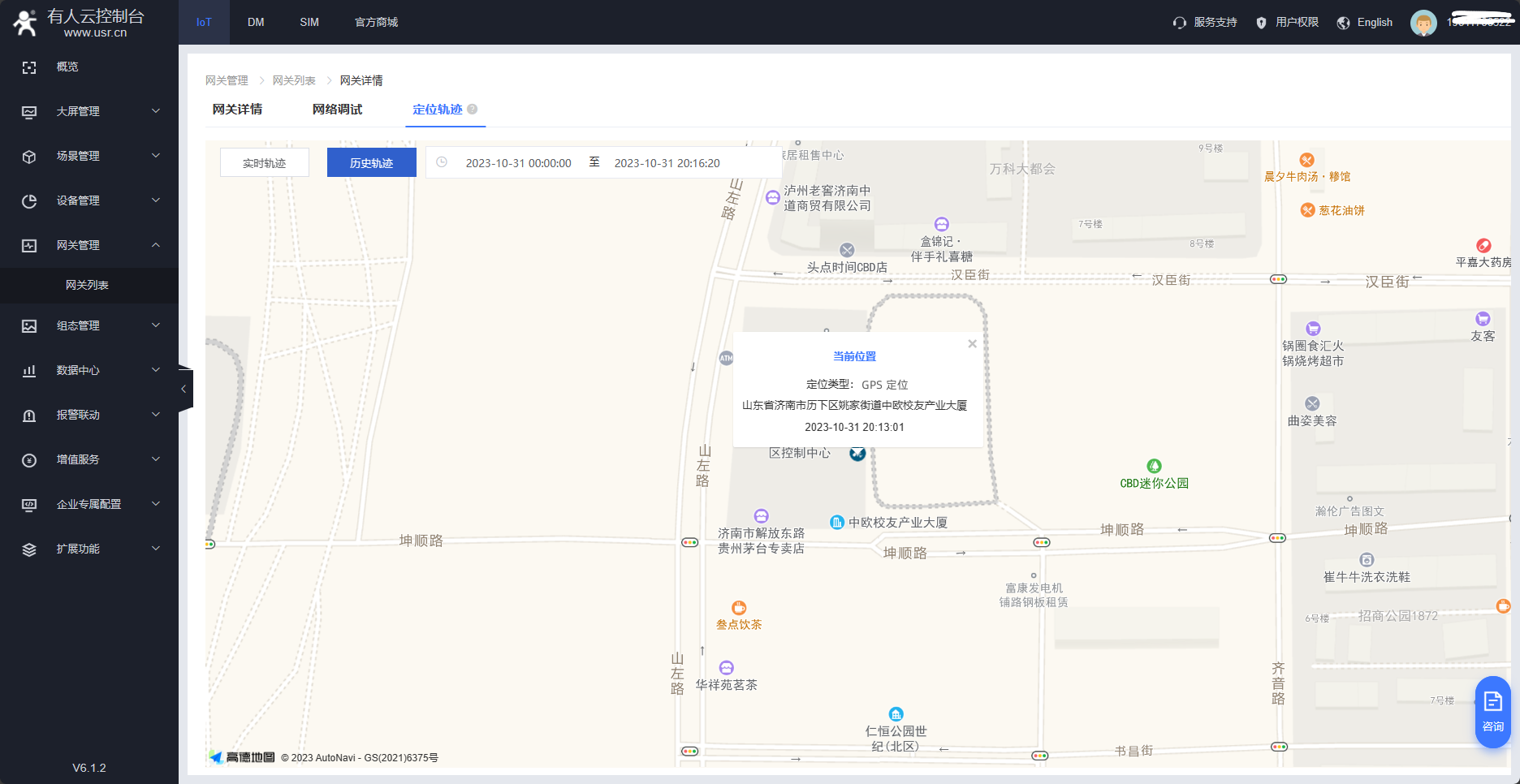 3、當設備上線后,我們可以點擊網關名稱,查看設備的定位軌跡。