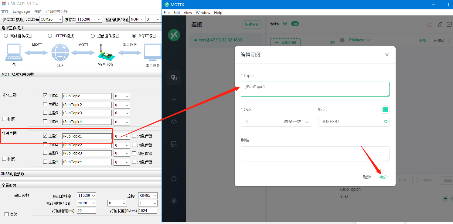 5.USR-G780s MQTT的訂閱主題模式支持純透傳訂閱模式(訂閱主題數據向串口透傳)和攜帶主題訂閱模式(訂閱主題數據攜帶主題向串口透傳)。