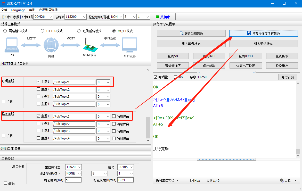 參數設置完成后點擊設置并保存所有參數,設備重啟