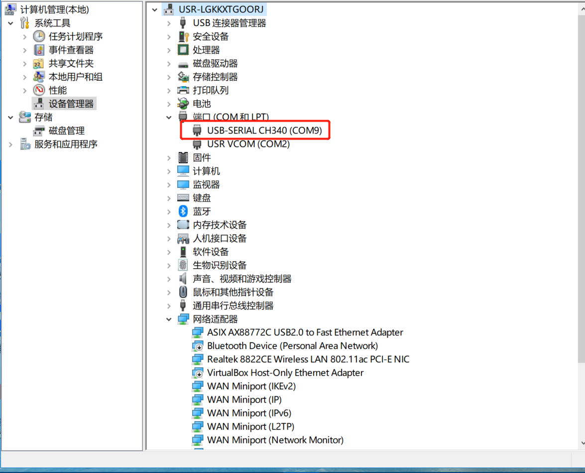 4、USR-TCP232-410s通過485轉(zhuǎn)USB接電腦,串口號可以在設(shè)備管理器中查詢。