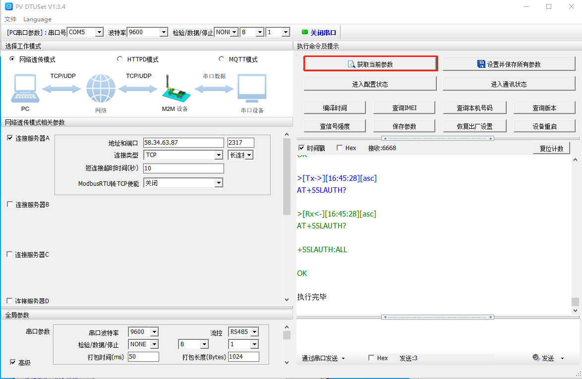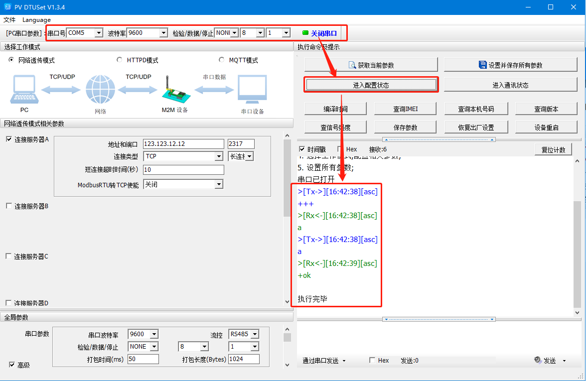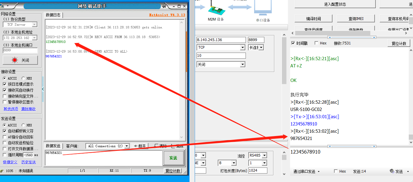 4.串口與服務器之間互發數據,可以實現相互數據透傳通信。