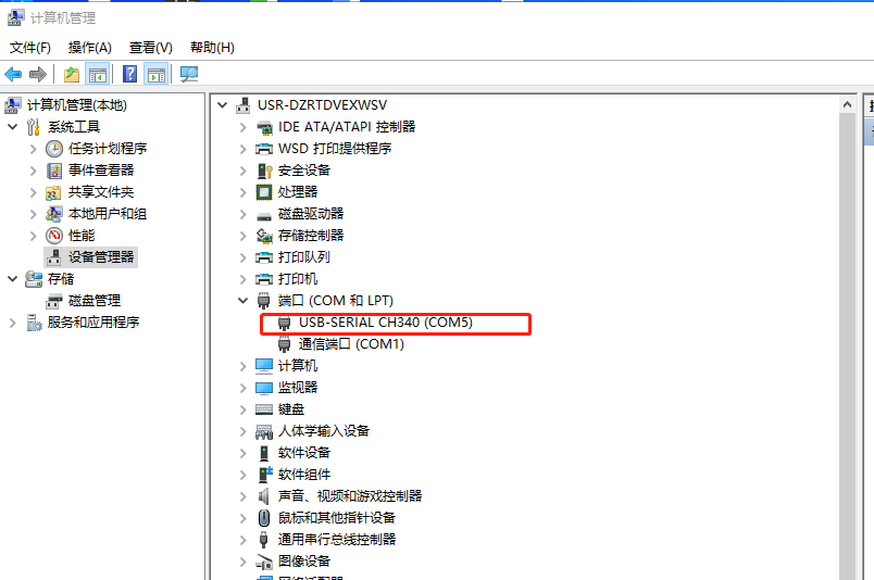 電腦鼠標點擊計算器管理,右擊,點開設備管理器,點擊端口,查看接S100鏈接RS485-USB串口線的COM口號。