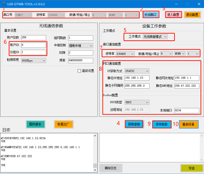 I. 點擊保存參數,點擊重啟設備,點擊關閉串口。