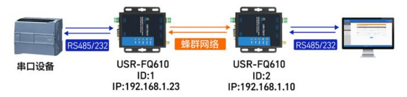 為方便測試,兩臺USR-FQ610串口均接電腦進行測試。
