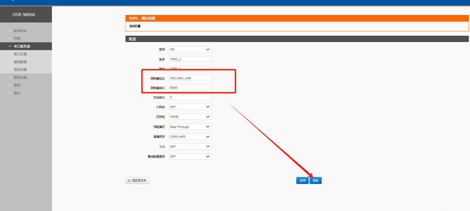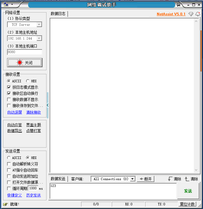 4、上位機服務器的IP為:192.168.1.244,端口為8080;