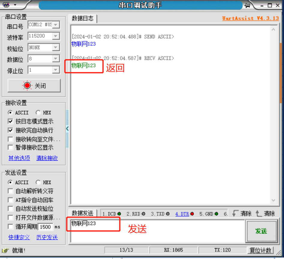 5.如果不勾選“移除httpd包頭”,從串口發送物聯網,會看到服務器返回的包頭和數據
