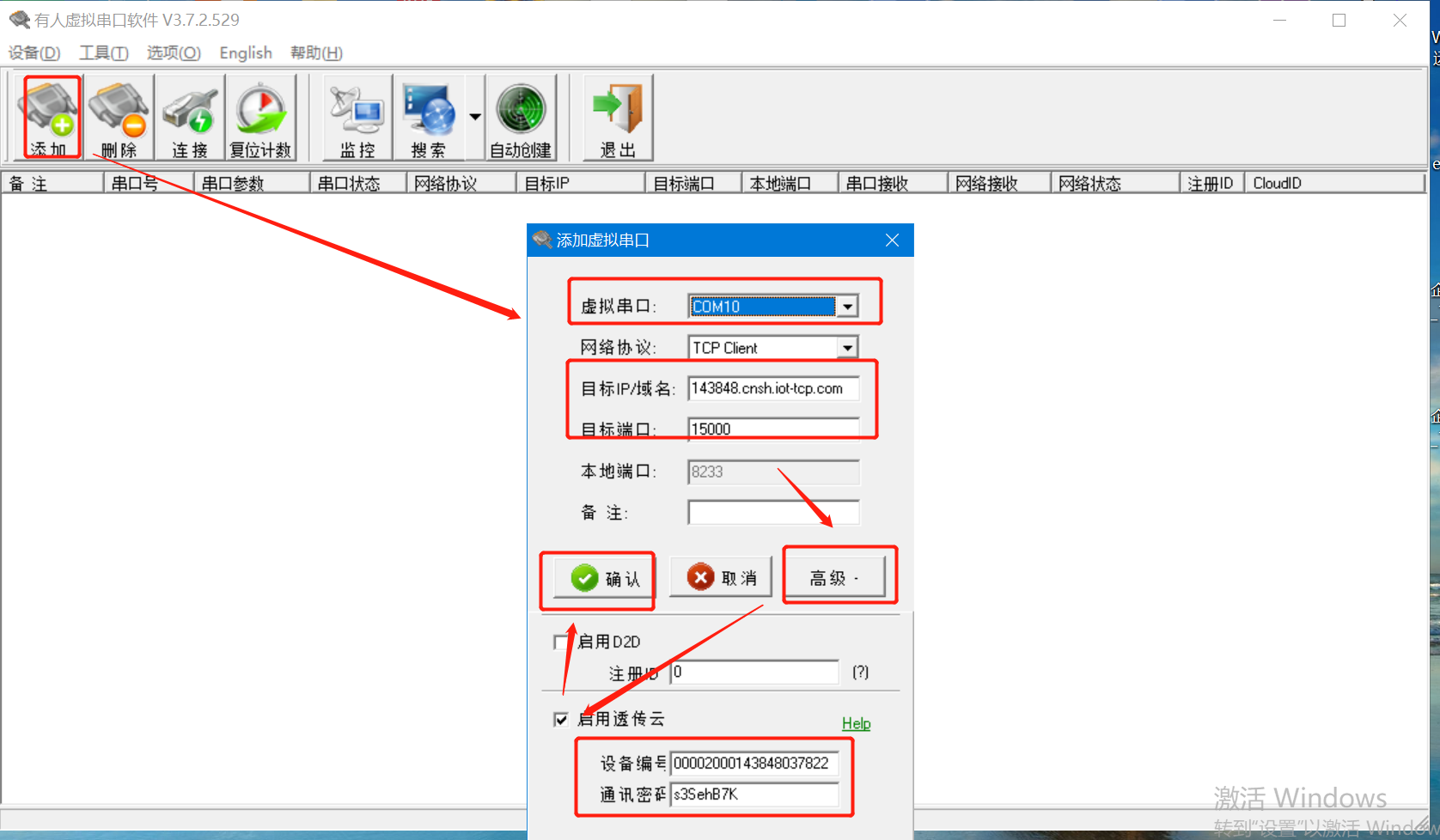 2、添加虛擬串口,選擇一個未被占用串口號,步驟和配置410s一致