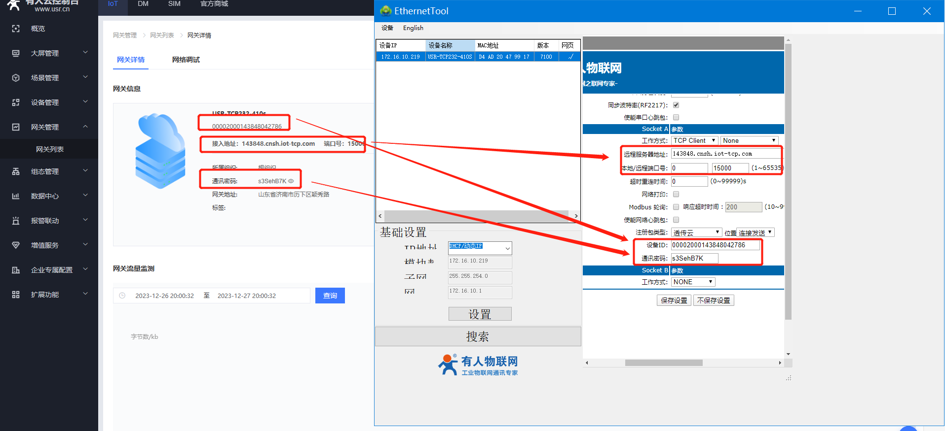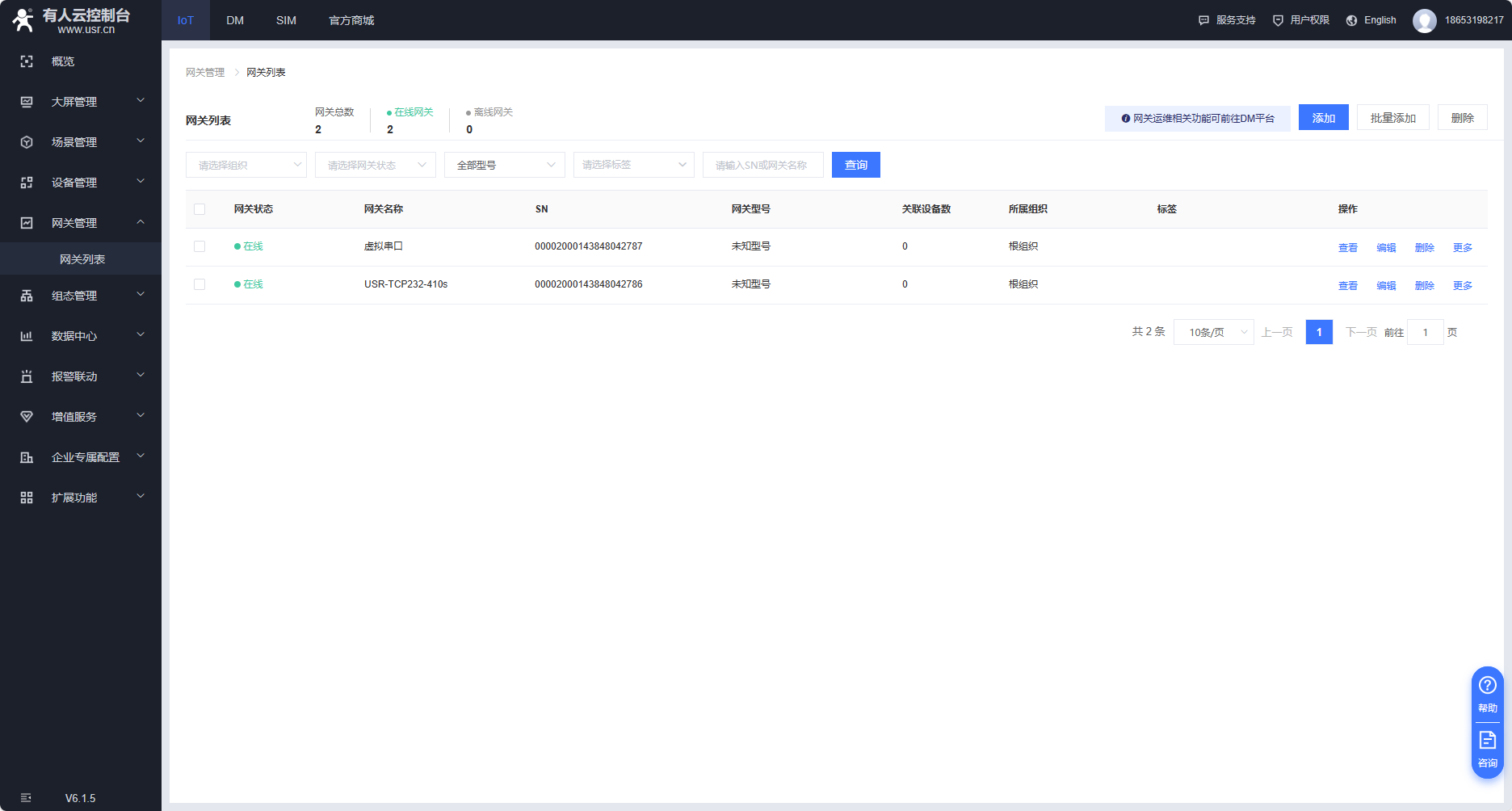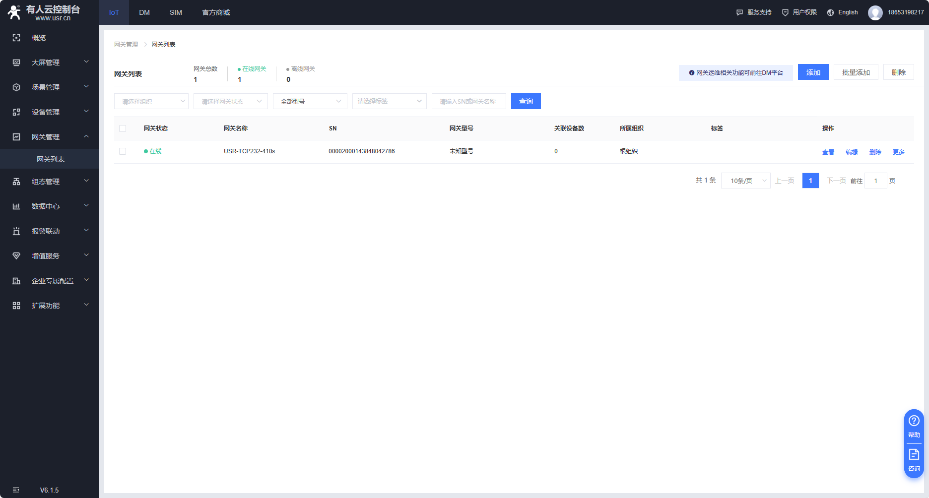 1、云平臺添加設備,在網關管理---網關列表--添加網關,點擊SN不支持,系統自動生成,不需要自己設置,打開數據透傳開關,通訊密碼可以自定義8位密碼.(建議使用系統自動生成的通訊密碼) 勾選有人云透傳。