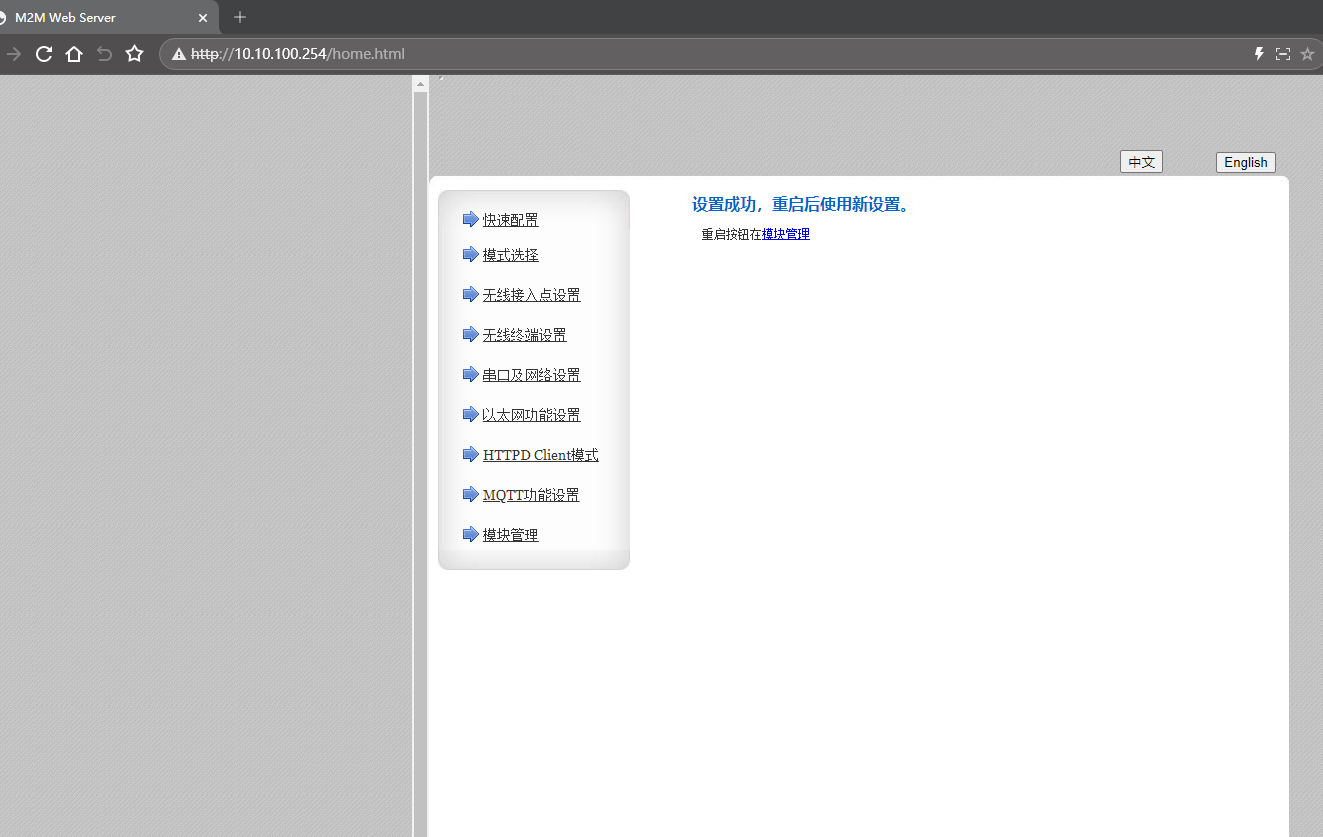 3、網(wǎng)頁設置完參數(shù),重啟模塊。