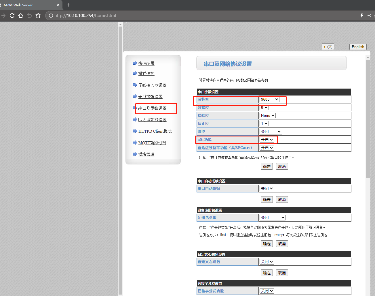 2、配置串口及網(wǎng)絡設置,設置串口參數(shù)。