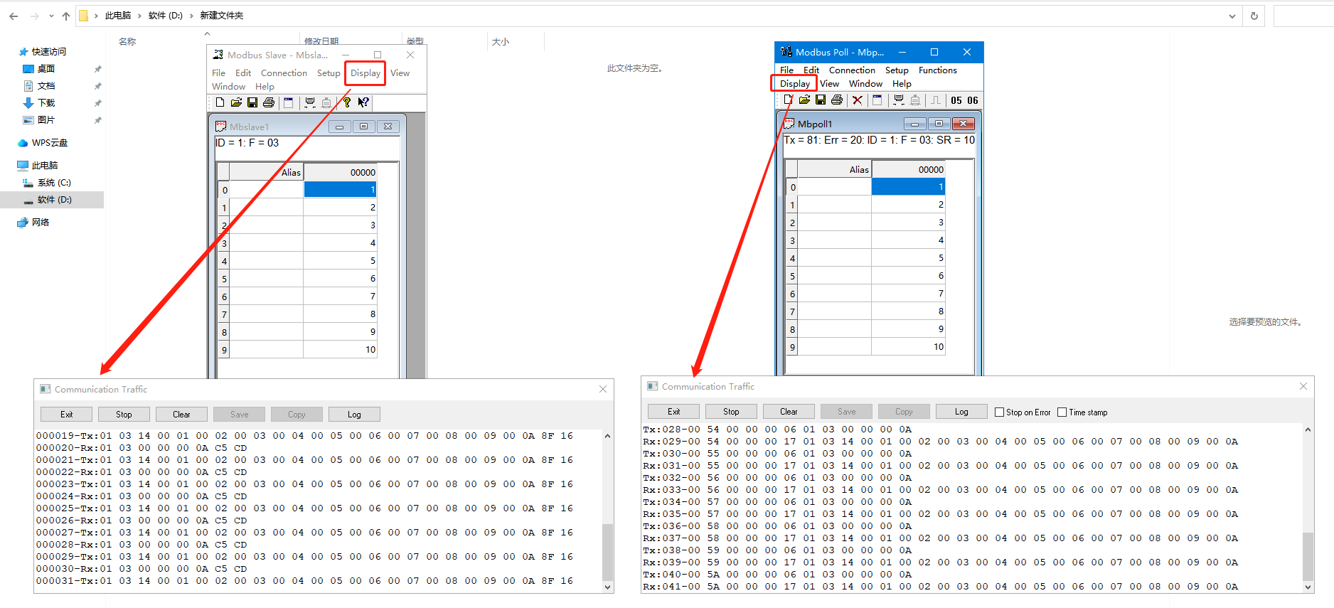 用MODBUS SLAVE軟件改變數(shù)值,MODBUS POLL就可以讀取到數(shù)據(jù),還可以監(jiān)控數(shù)據(jù)。