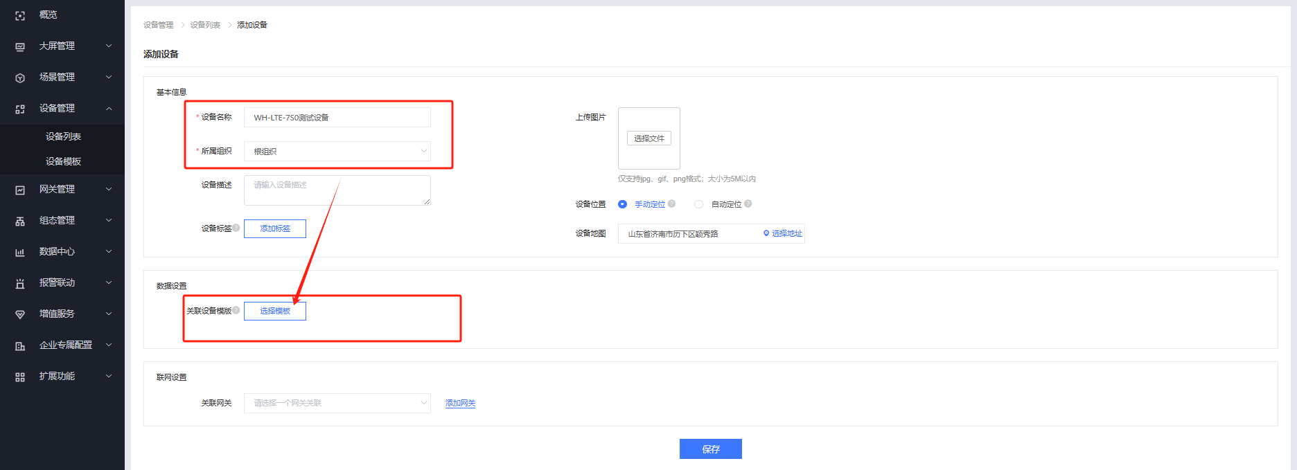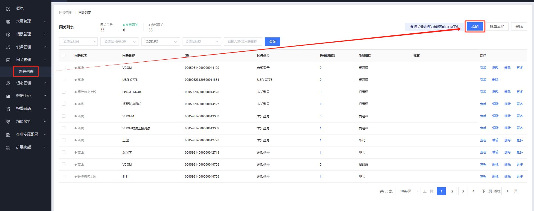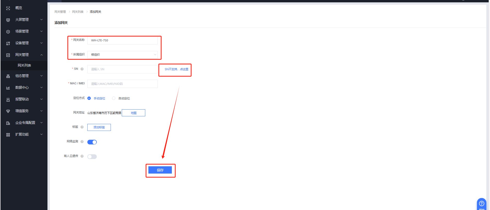 填入網關名稱---選擇根組織,選擇“SN不支持,點這里” 點擊保存。