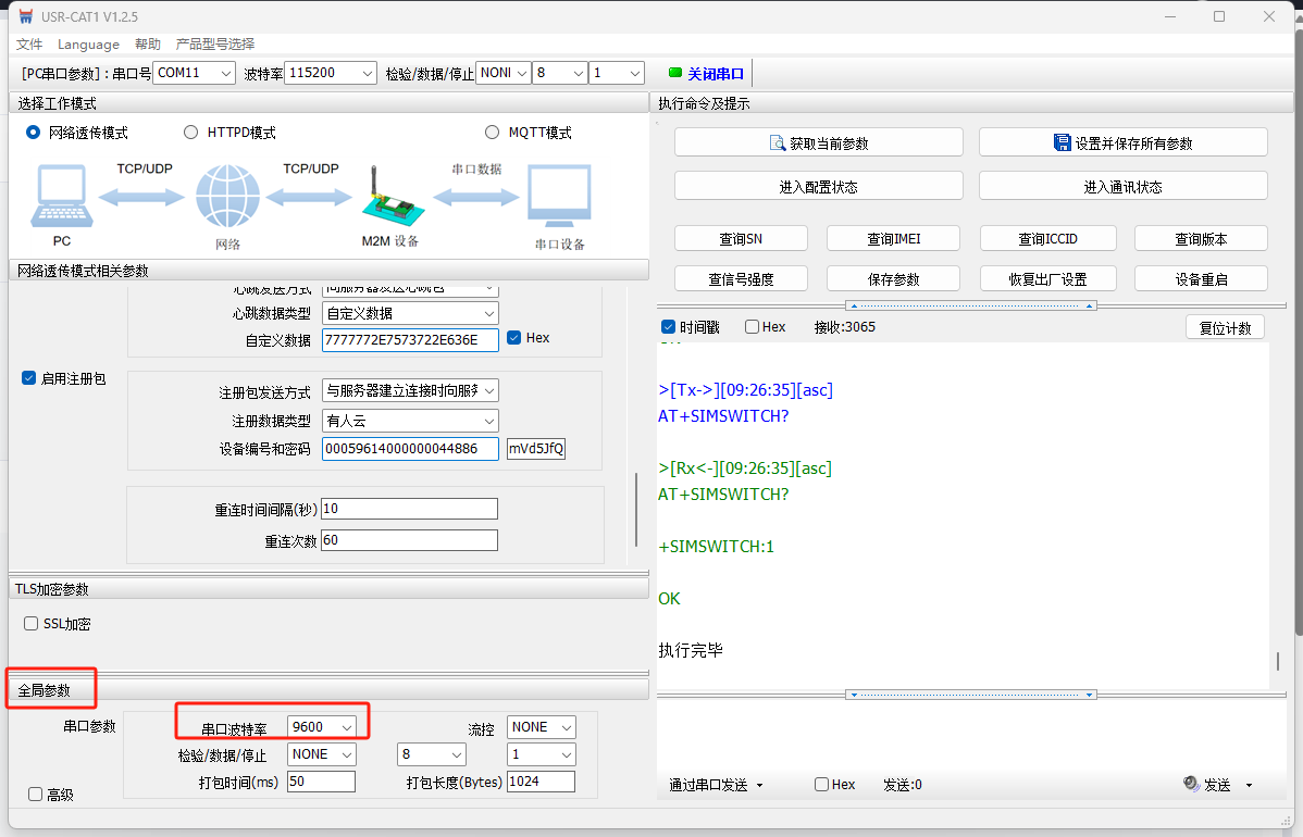 全局參數,串口波特率改為9600(可不改,根據用戶從機實際情況確定,此例為修改串口參數示例)