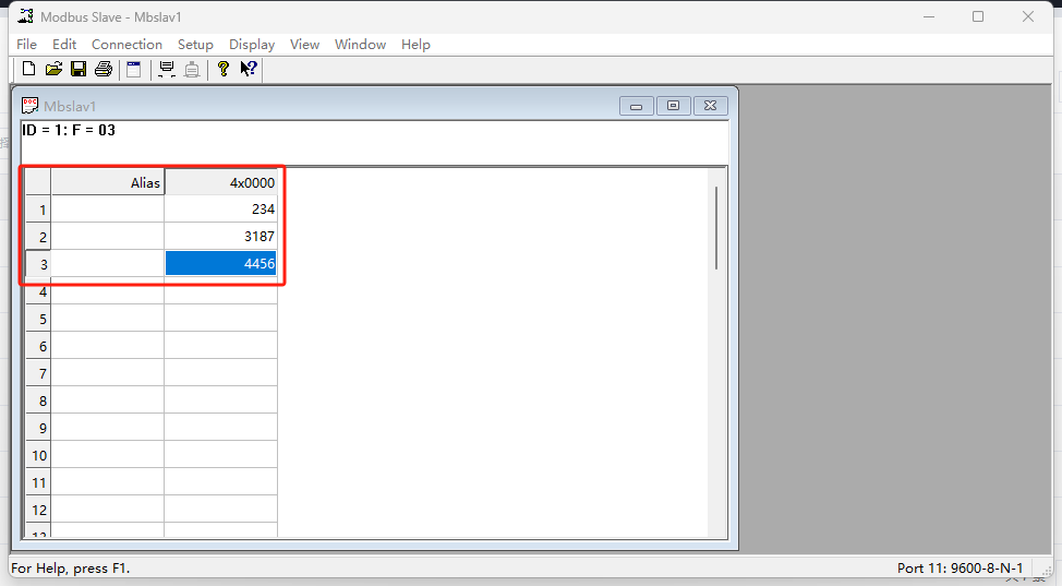 設備地址1,功能碼03,寄存器起始地址1,數量3,和云端模板一一相對應。