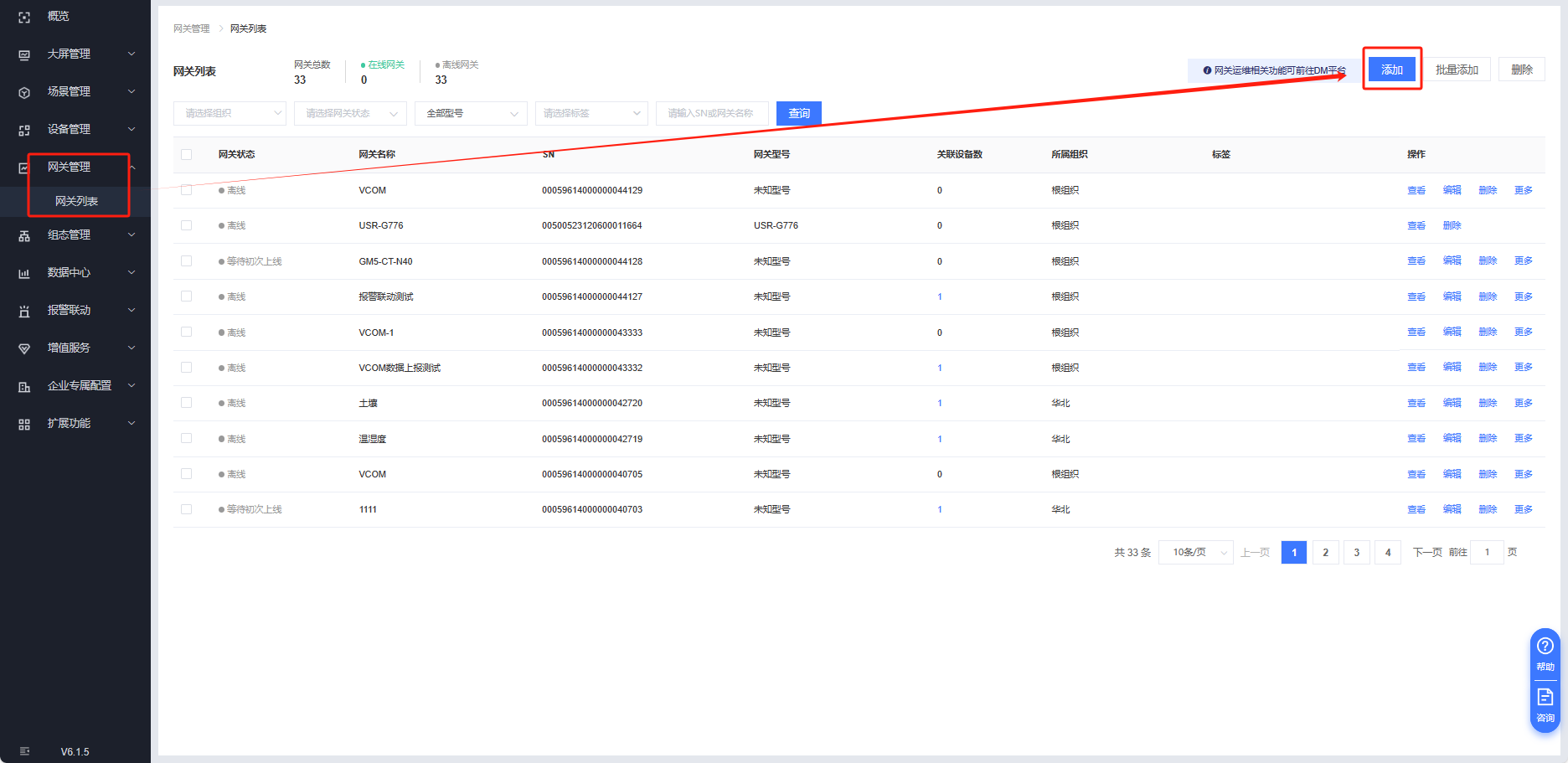 填入設備名稱,選擇根組織,填入WH-LTE-7S0絲印上的SN和IMEI,開啟有人云透傳,點擊保存。