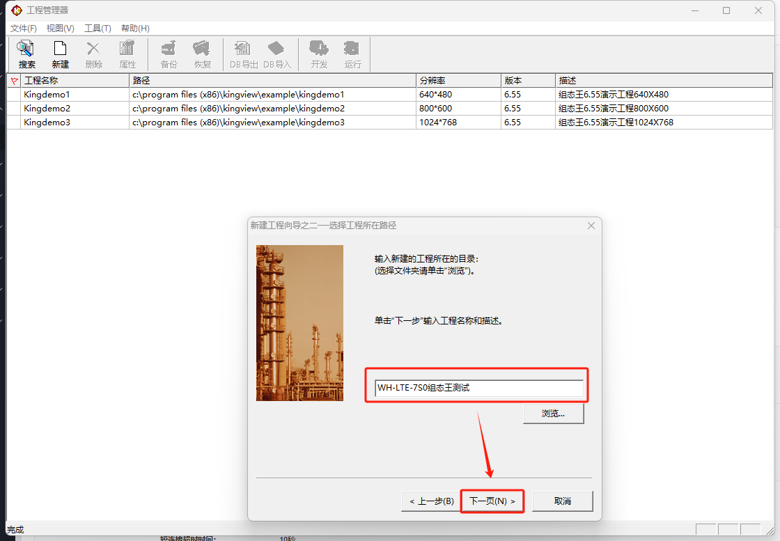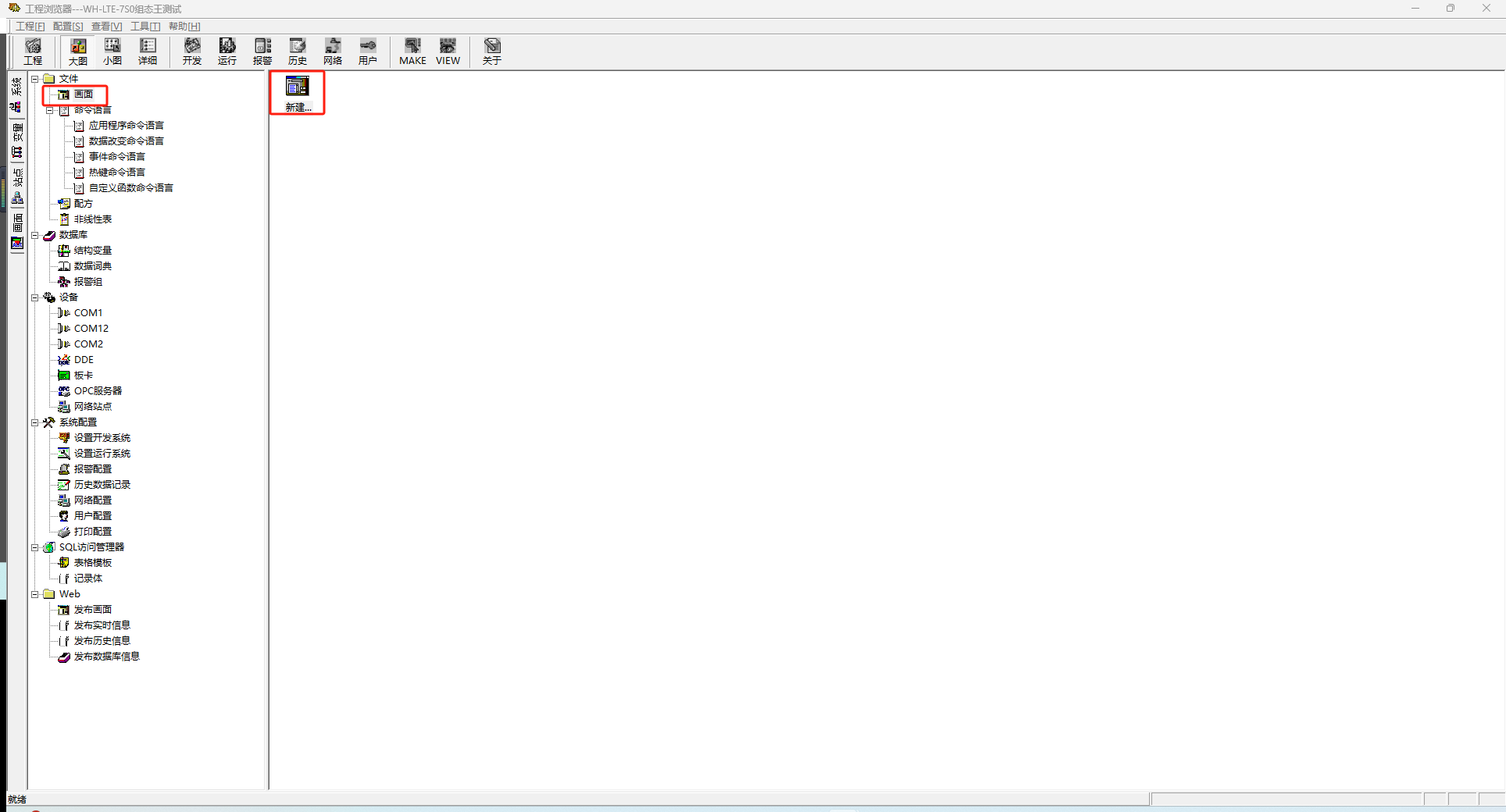 打開組態王軟件,新建工程,工程命名為“WH-LTE-7S0組態王測試” 創建一個新工程。