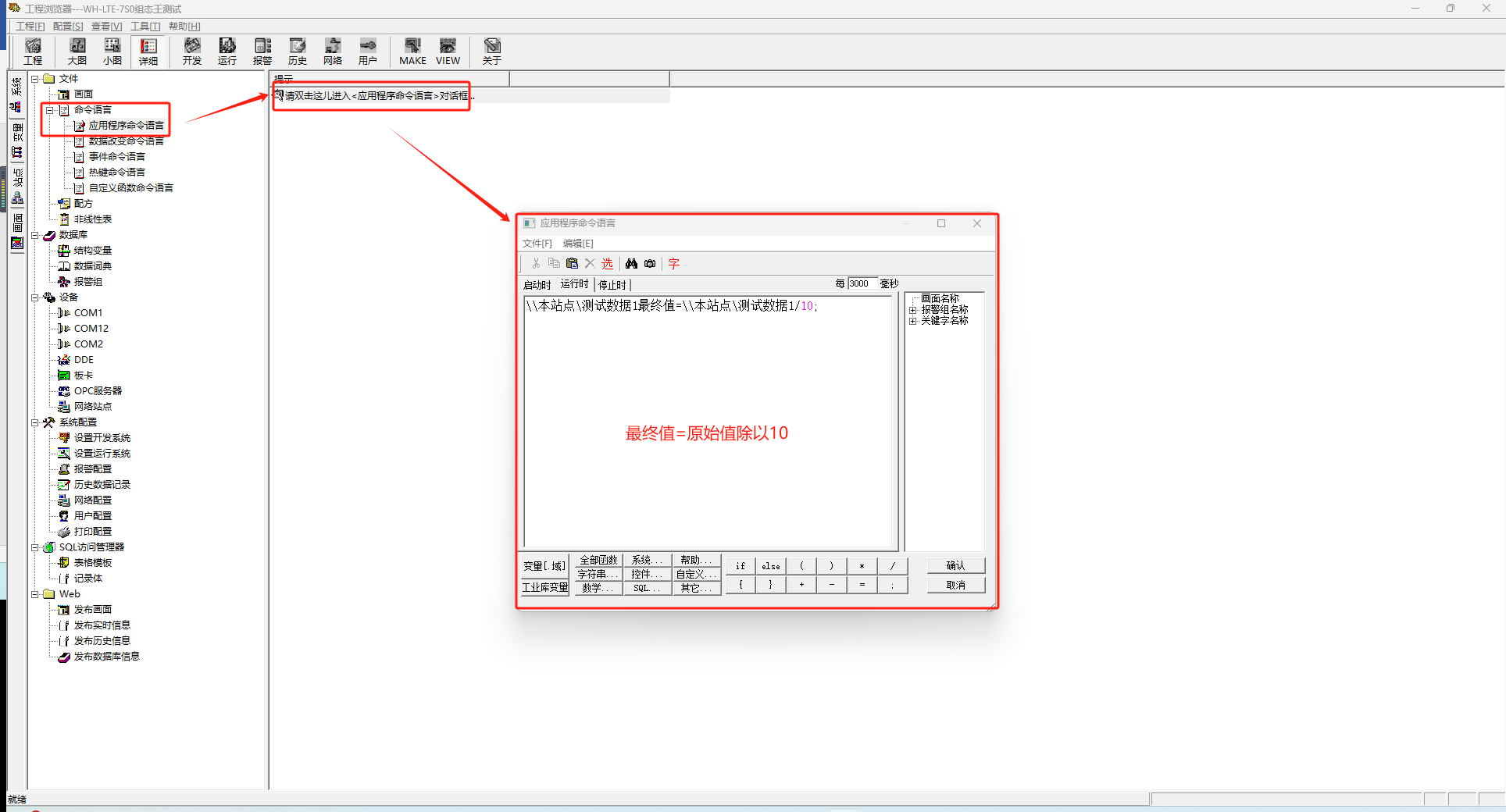 命令語言---應用程序命令語言,設置原始數據和最終數據之間的換算關系。
