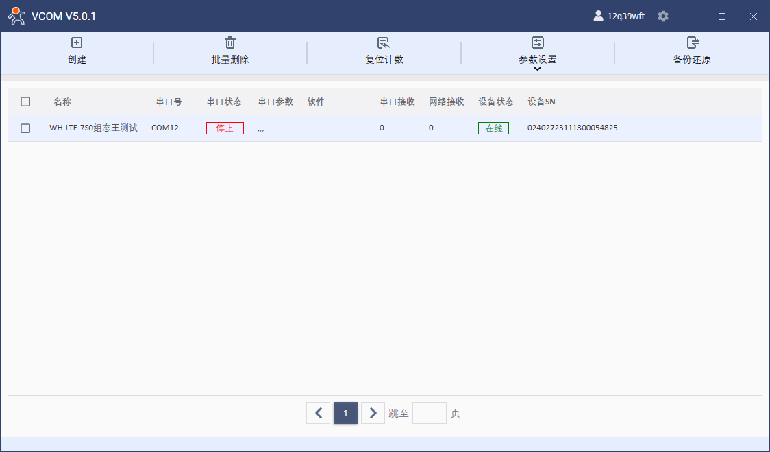 即可看到WH-LTE-7S0和虛擬串口COM12已經建立了透傳關系。