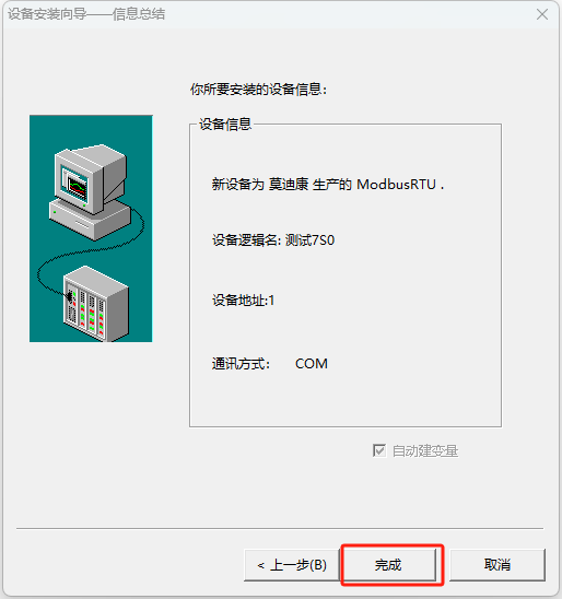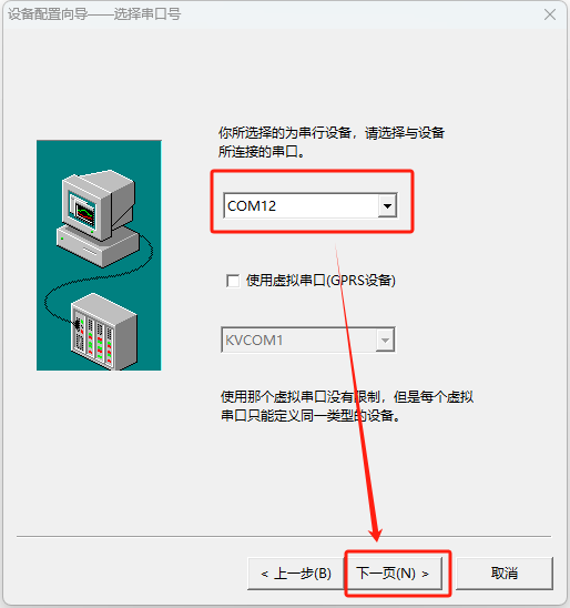 雙擊工程進入配置頁面:設備---新建---PLC---莫迪康---modbus rtu---COM---下一頁