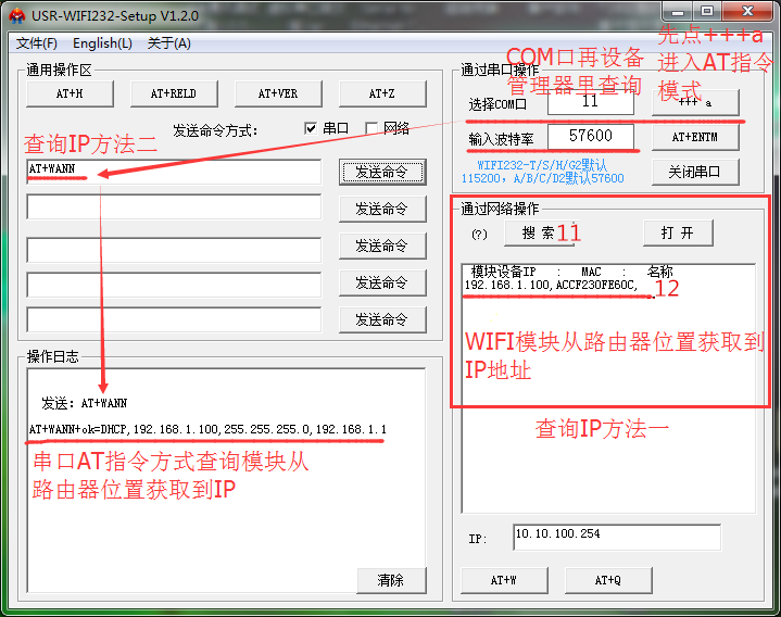 7.查詢模塊從路由器AP獲取到IP地址。查詢IP有兩種方式。