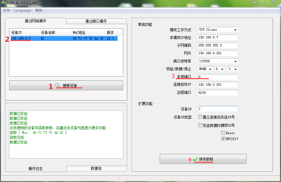 方法:可通過一個網絡調試軟件(軟件點擊此處下載),將IP地址和端口設置與當前使用到模塊參數相同。使用軟件模擬客戶端去連接服務器,查看是否能連接上。也可以將服務器重啟。
