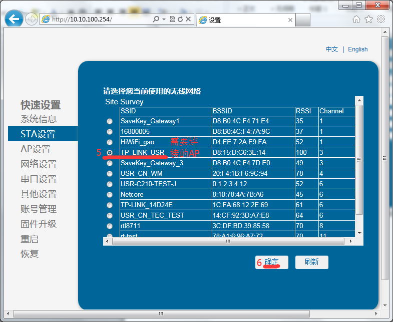 一、首先設置模塊連接到一個能訪問外網的AP路由器上。
